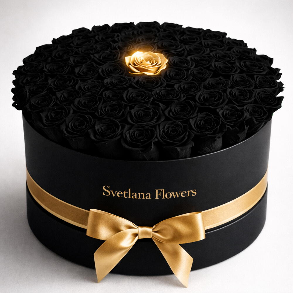 Une composition saisissante et luxueuse composée de 100 roses noires entourant une seule rose dorée au centre, présentée avec élégance dans un coffret noir épuré. Cette combinaison audacieuse et élégante symbolise la sophistication, l'unicité et l'admiration éternelle. Parfaite pour marquer les esprits, célébrer des occasions grandioses ou offrir à quelqu'un de vraiment spécial.