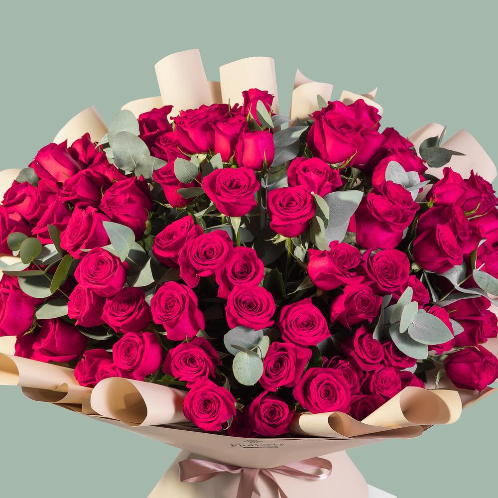 Nous vous présentons notre majestueux bouquet de 101 roses, un chef-d'œuvre réalisé par nos fleuristes qualifiés. Débordant de roses éclatantes et de verdure luxuriante, cet arrangement grandiose incarne l'élégance et une émotion sincère à une échelle impressionnante. Personnalisez votre cadeau avec un choix d'options d'emballage, ajoutant une touche personnelle à cette présentation à couper le souffle qui dépasse les mots. Chaque fleur et chaque accent verdoyant sont disposés avec soin, créant une expression profonde d'amour, d'admiration ou de gratitude. Sublimez les sentiments avec ce bouquet extraordinaire, enveloppant le destinataire d'une profonde chaleur et d'une sincère reconnaissance. Découvrez l'abondance de 101 roses, accompagnées d'une verdure luxuriante, dans un cadeau véritablement grandiose et porteur de sens qui en dit long sans prononcer un seul mot.
