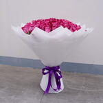 Offrez l'expression ultime de l'amour avec un somptueux bouquet composé de 101 roses violettes envoûtantes. Ces fleurs vibrantes et de qualité supérieure sont soigneusement assemblées, enveloppées de 8 feuilles d'emballage blanc immaculé pour une touche d'élégance supplémentaire. Le bouquet est ensuite élégamment maintenu par un unique ruban violet assorti, noué en un beau nœud. Ce bouquet monochrome n'est pas seulement un cadeau, mais un véritable symbole de splendeur et d'admiration à chérir pour toute une vie.