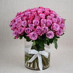 rose violette - 101 pce ribbon satin - 1 pce vase cylindrique - 1 pce