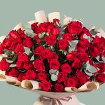 Red rose - 101 pce Eucalyptus - 18 pce Wrapping - 1 pce