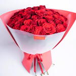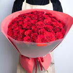 Bouquet de 51 roses rouges avec un ruban rouge noué. Cadeau parfait pour la Saint-Valentin ❤️