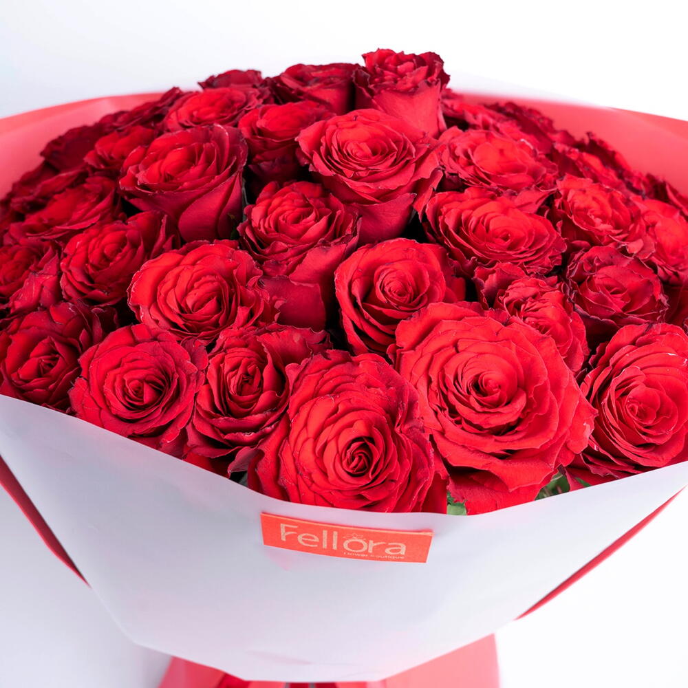 Bouquet de 51 roses rouges avec un ruban rouge noué. Cadeau parfait pour la Saint-Valentin ❤️