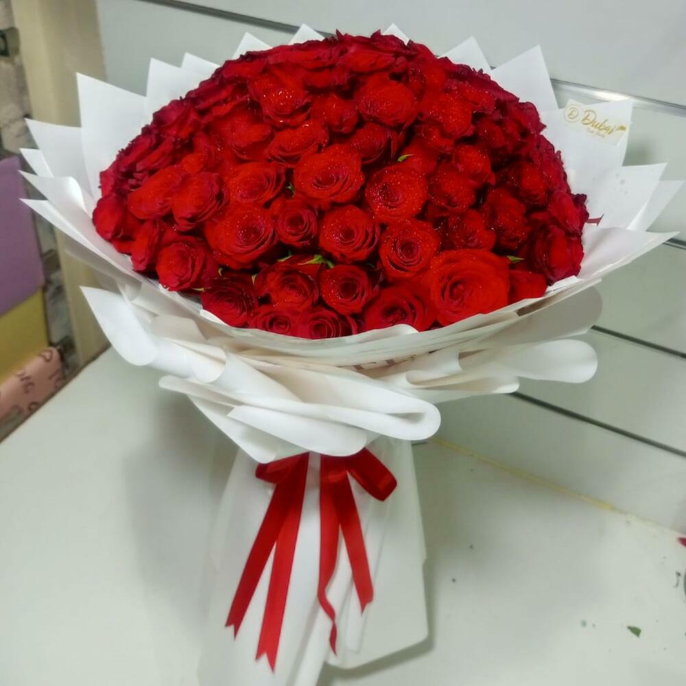 Bouquet de 101 roses rouges(emballage blanc)