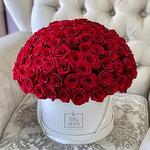 Arrangement en boîte de 131 roses fraîches.