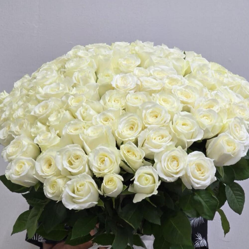 101 Roses Blanches – Tige de 64 cm | Élégance en Pleine Floraison Faites sensation avec ce magnifique bouquet de 101 roses blanches de première qualité, chacune sélectionnée à la main pour sa fraîcheur et sa beauté immaculée. Avec leurs tiges de 64 cm, ces roses à longues tiges respirent l'élégance et la pureté intemporelles, parfaites pour les mariages, les anniversaires ou toute autre occasion spéciale. Symboles d'innocence, de respect et d'amour éternel, les roses blanches sont un geste classique d'admiration et de sincérité. Arrangé en un bouquet généreux et luxuriant, ce bouquet est aussi luxueux que significatif : une façon époustouflante de témoigner votre affection. • Quantité : 101 roses blanches fraîches • Longueur de la tige : 64 cm • Présentation : Liée à la main ou prête pour une composition personnalisée • Idéal pour : Gestes romantiques, mariages, anniversaires, condoléances ou célébrations spéciales