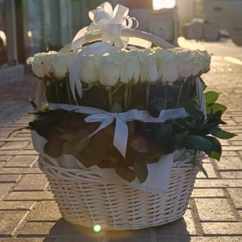 Basket - 1 pce roses blanches - 101 pce