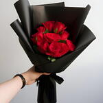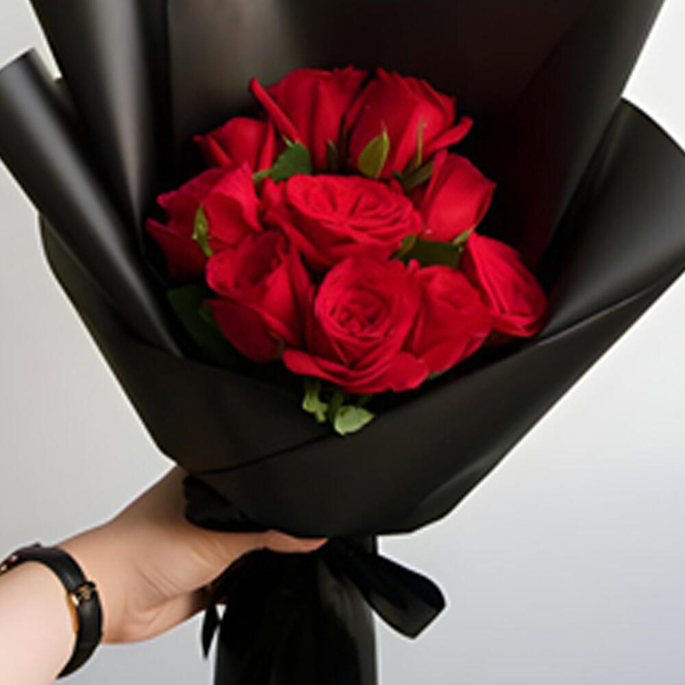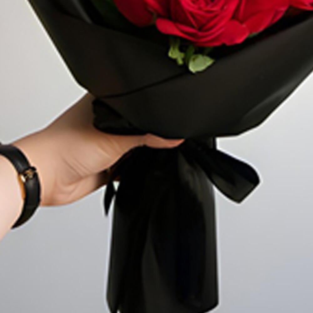 11 roses rouges avec emballage noir