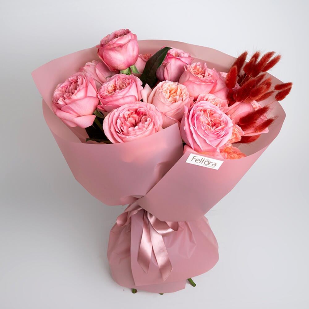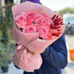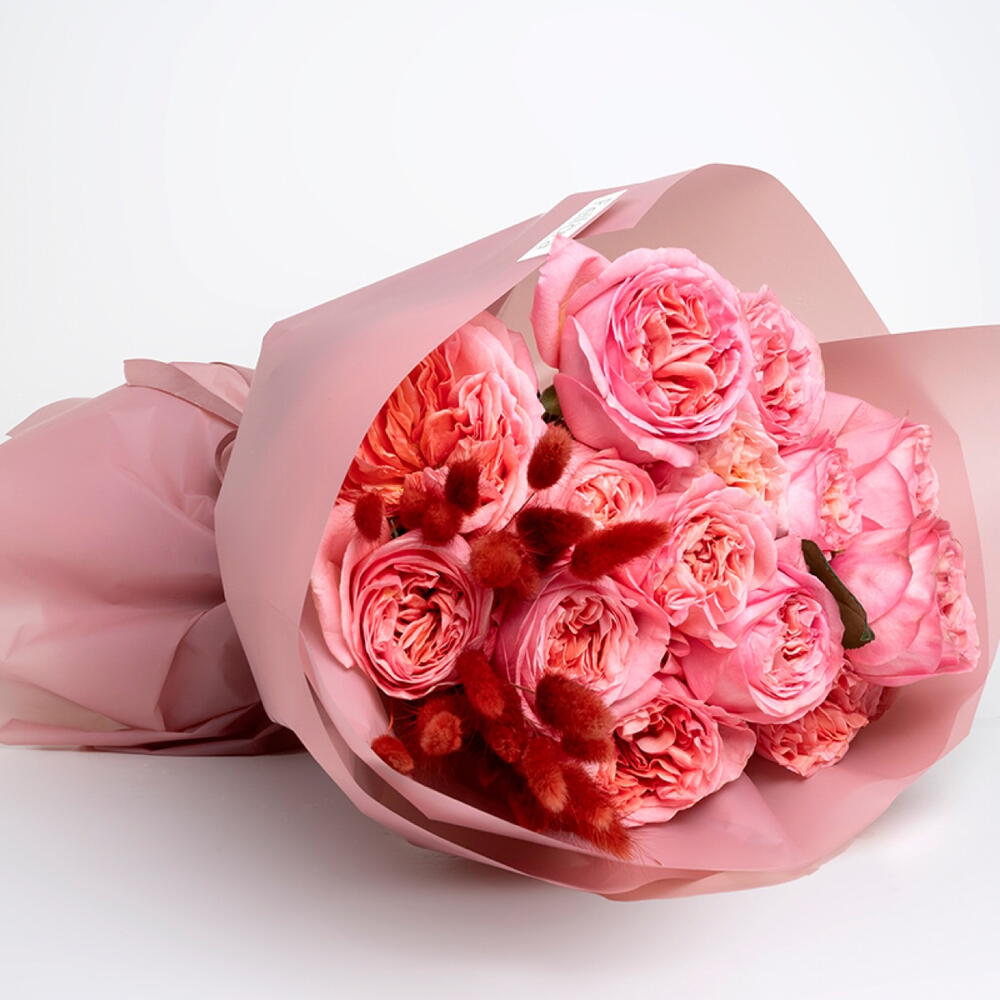Mono-bouquet de 15 tiges de roses de jardin premium, rose.