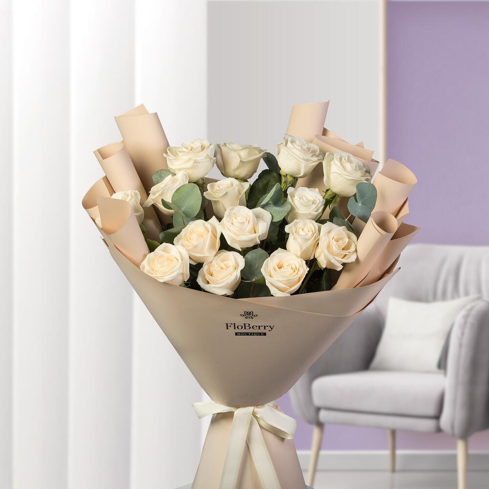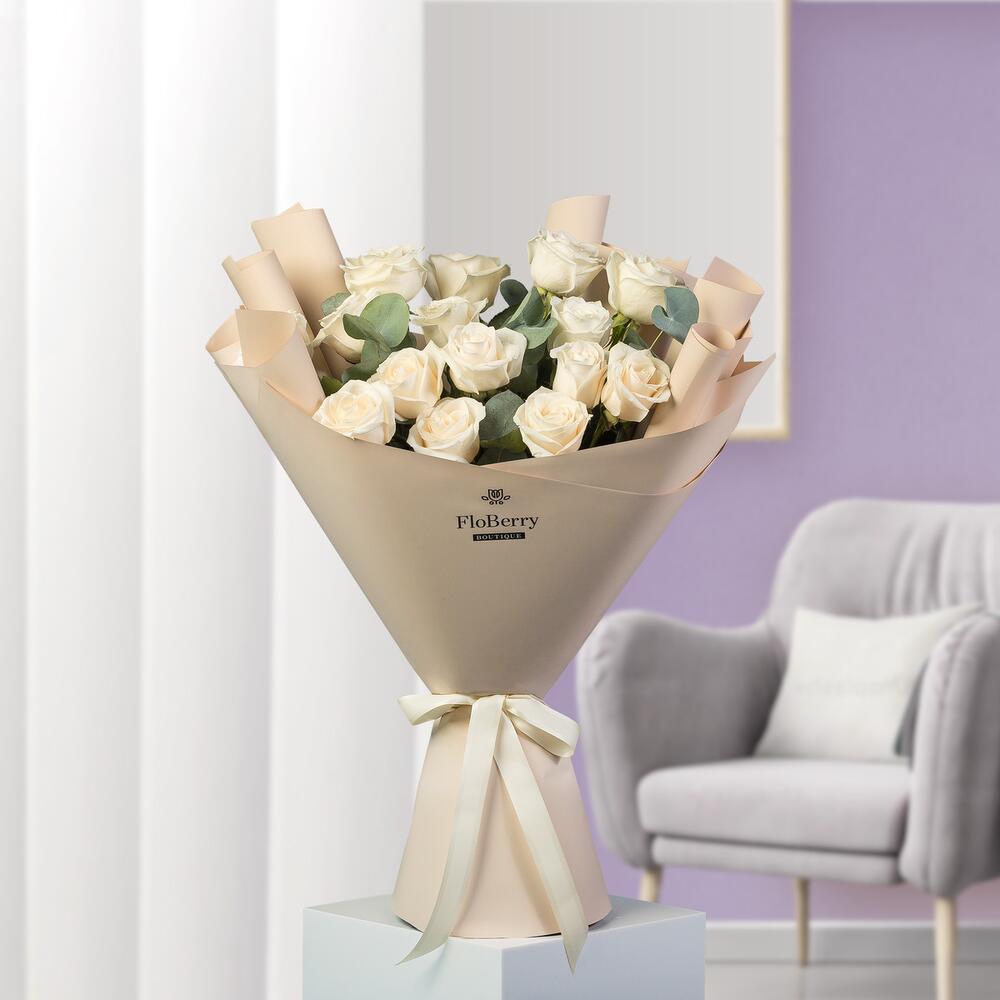 Eucalyptus - 5 pce White rose - 15 pce Wrapping - 1 pce
