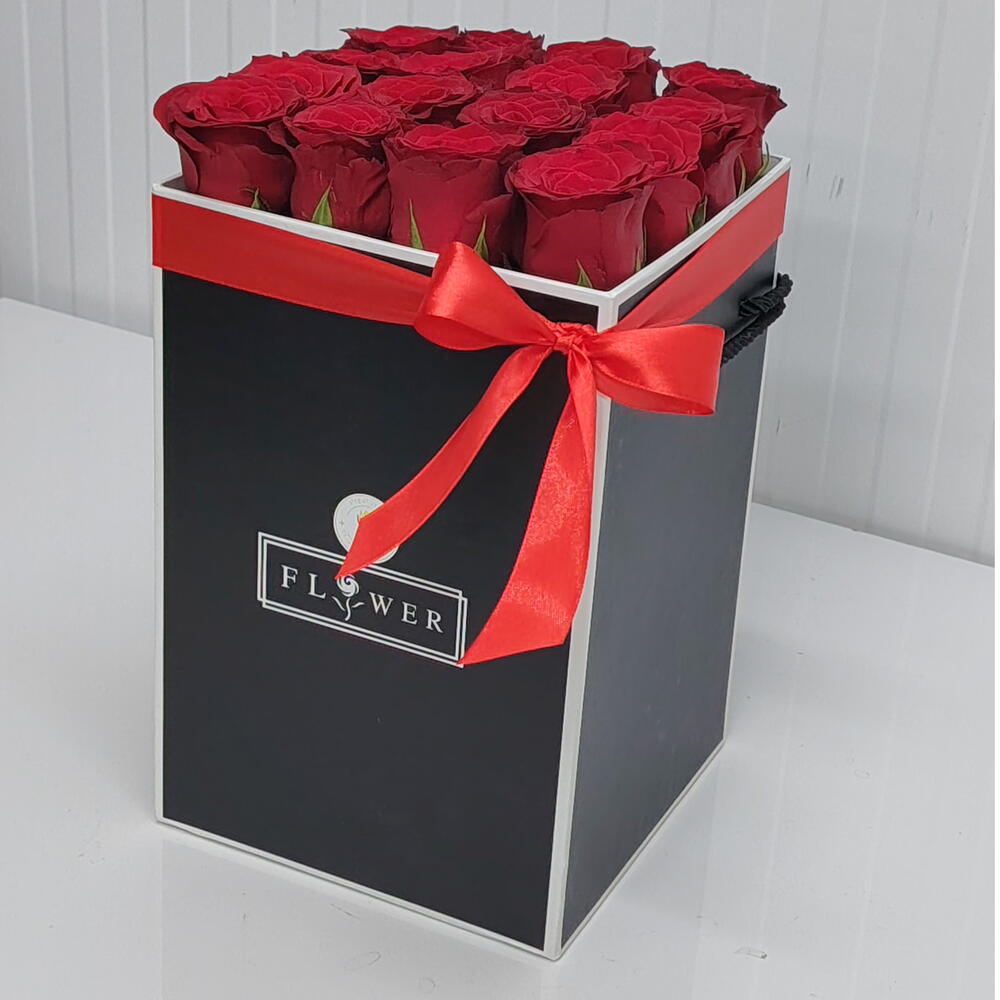 Boîte longue de 16 roses rouges