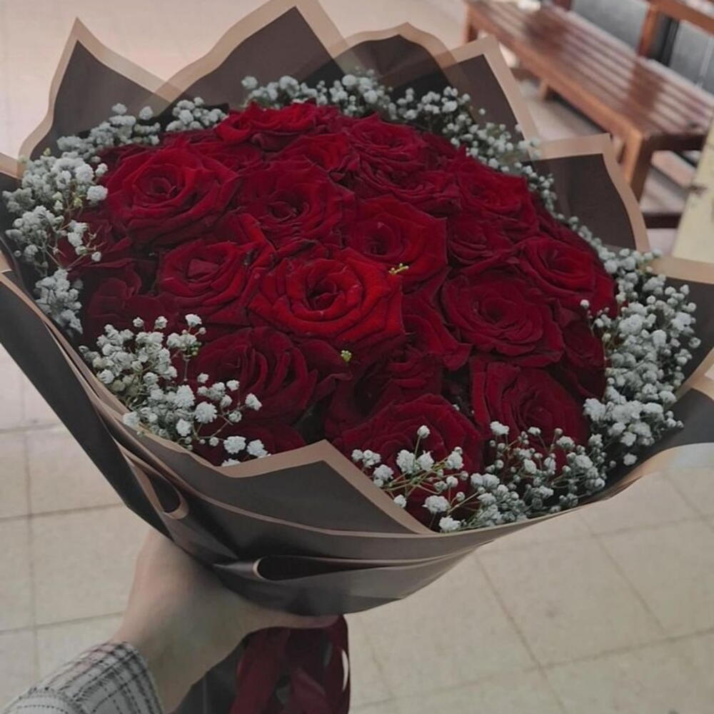 Gypsophila - 3 pce roses rouges premium - 20 pce