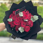 Red rose - 20 pce Eucalyptus - 6 pce emballage noir - 5 pce
