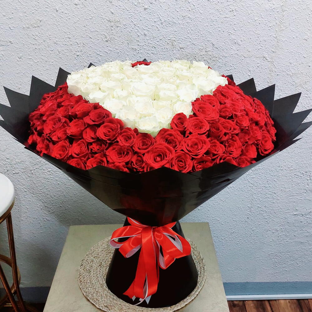 Ce Marshmallow Bouquets magnifiquement confectionné combine l'élégance intemporelle et le charme romantique de 120 roses rouges à la pureté immaculée de 81 roses blanches. Chaque fleur est méticuleusement cueillie à la main pour insuffler la perfection au bouquet. Idéal pour exprimer l'amour, le respect, la gratitude et l'admiration, ce bouquet ne se contente pas d'offrir un objet, mais une magnifique expérience.