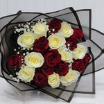 Red rose - 11 pce White rose - 10 pce Gypsophila - 2 pce wrapping paper - 4 pce
