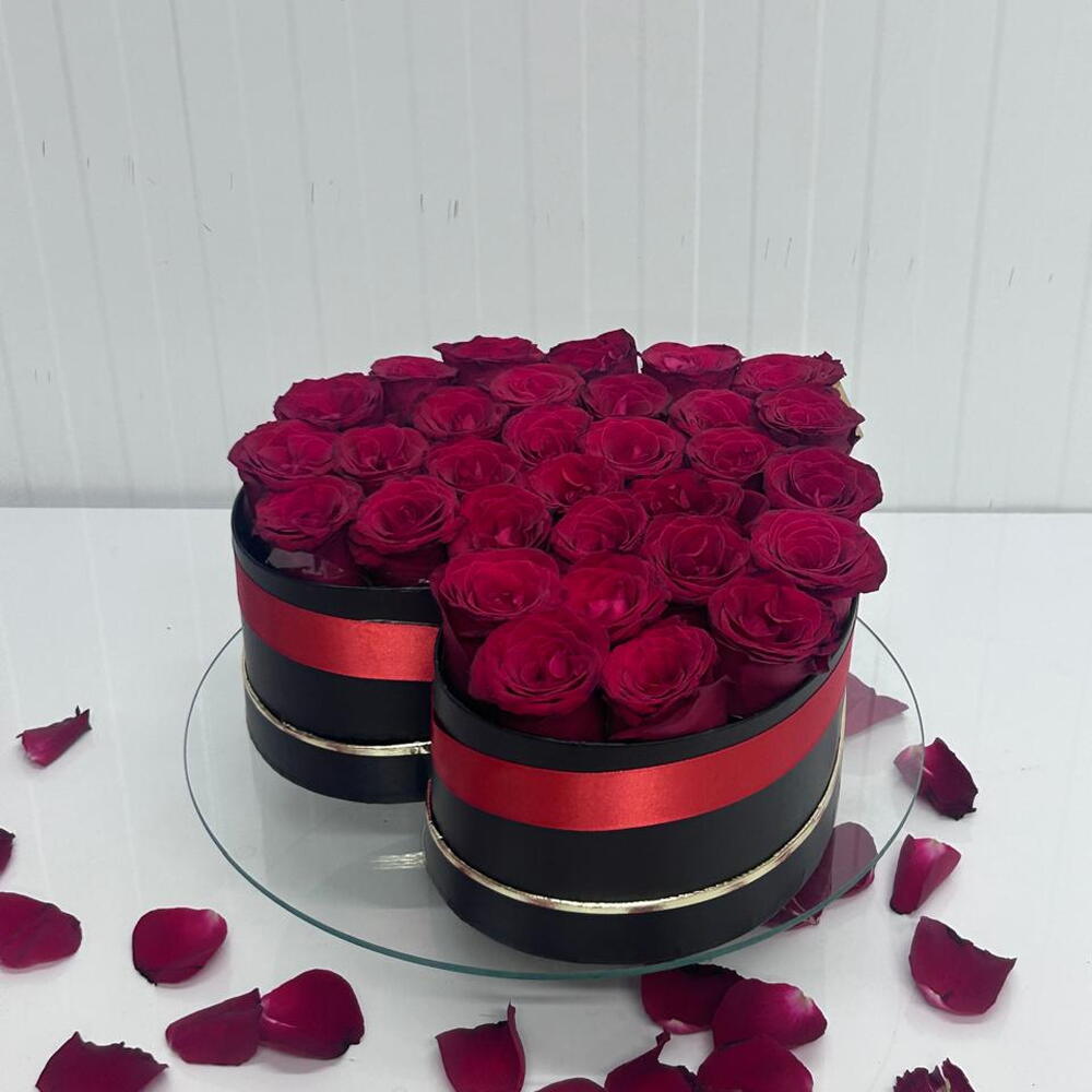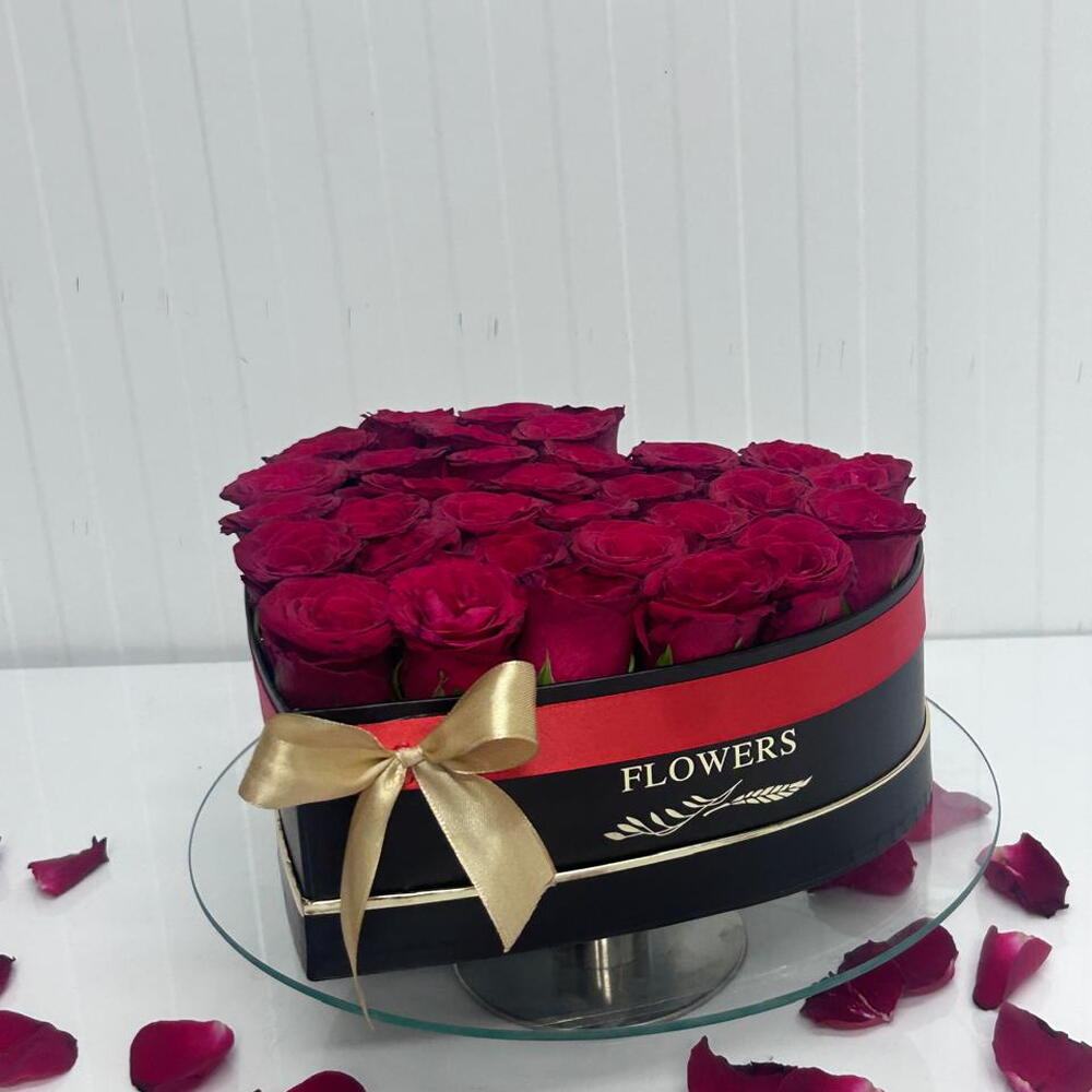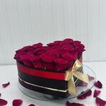 21 roses rouges en boîte noire