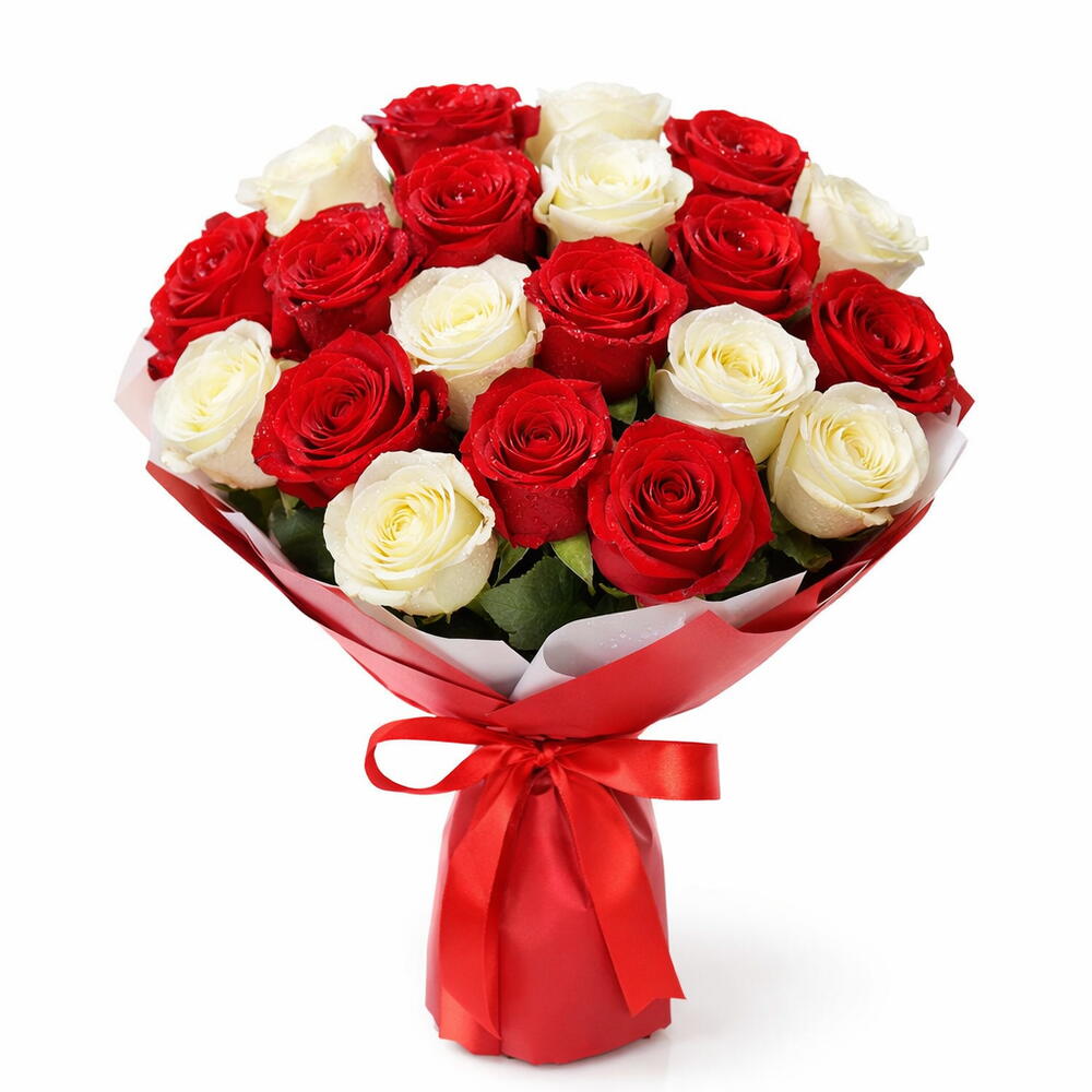 Bouquet de 21 roses rouges et blanches
