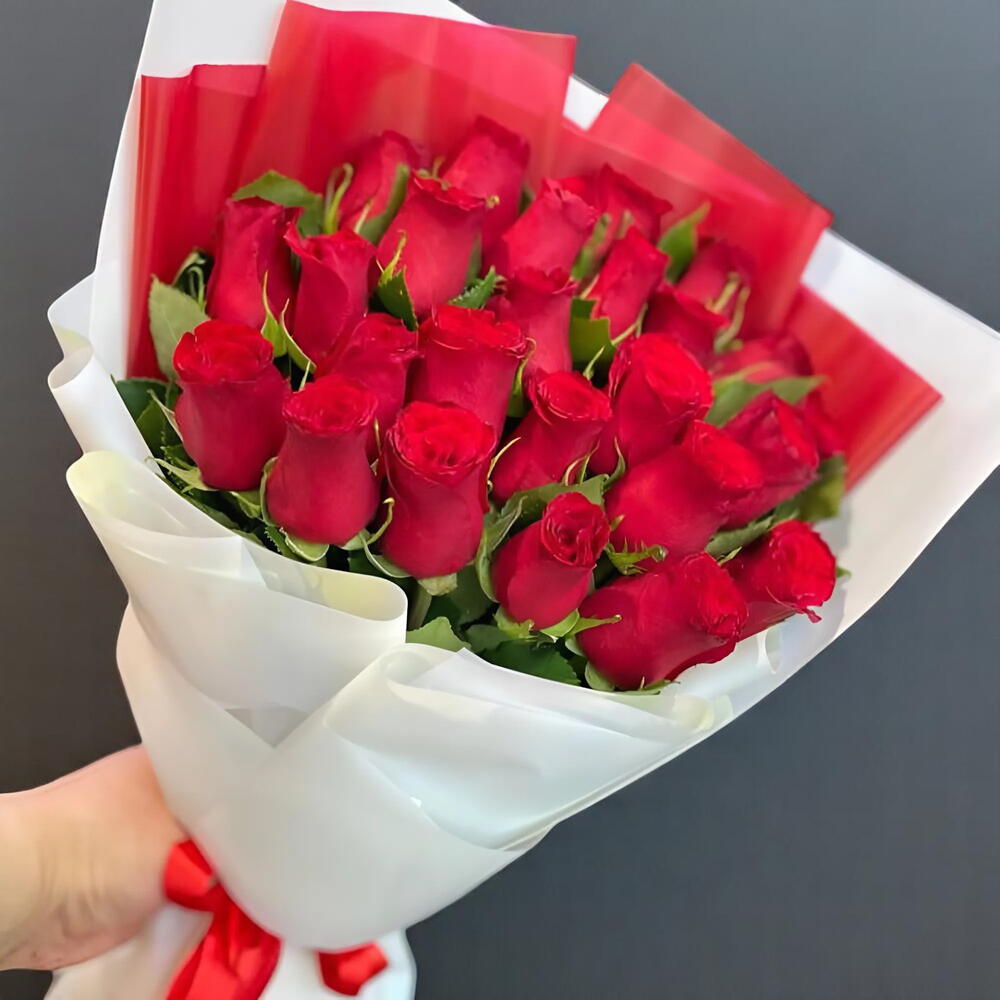 Audacieux, passionné et inoubliable — l'Eternal Love – bouquet plat de 25 roses rouges est une expression intemporelle d'une profonde affection et d'une dévotion sincère. Ce bouquet saisissant présente 25 roses rouges de qualité supérieure à longues tiges, disposées avec art dans un design plat et moderne pour un impact visuel maximal. Enveloppé dans des couches élégantes rouges et blanches et fini par un ruban rouge classique, ce bouquet est parfait pour des moments romantiques marquants ou de grands gestes d'amour. Que vous fassiez votre demande en mariage, célébriez un anniversaire ou exprimiez simplement « je t'aime », ce chef-d'œuvre floral fait éclore vos émotions avec élégance. Conseils d'entretien : Coupez les tiges en biais de 1 à 2 cm et placez immédiatement les roses dans de l'eau fraîche. Changez l'eau quotidiennement et gardez le bouquet dans un endroit frais, à l'abri de la chaleur et de la lumière directe du soleil. Brumisez légèrement les pétales pour les garder hydratés et frais.