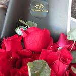 Ruban rouge - 1 pce rose rouge fraîche - 25 pce emballage noir - 1 pce