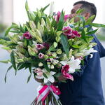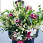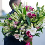 Bouquet de 25 lys roses et blancs, noué à la main, sans emballage
