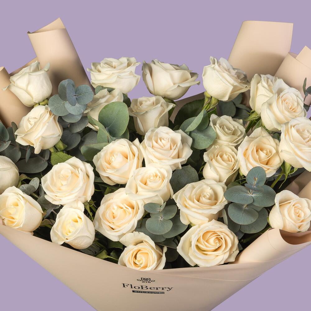 Eucalyptus - 7 pce White rose - 25 pce Wrapping - 1 pce