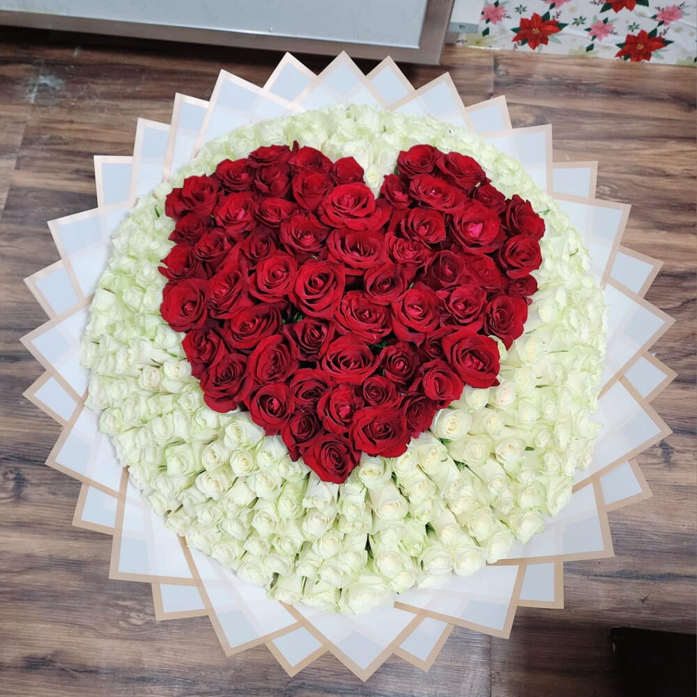 Préparez-vous à être captivé par l'élégance et le charme de ce mono-bouquet à couper le souffle. Composé de 200 roses blanches immaculées, agrémenté de 101 roses rouges captivantes supplémentaires, ce bouquet n'est pas seulement un spectacle visuel mais aussi une symphonie de couleurs. Pour une surprise subtile, 30 pièces de poivre blanc ont été intégrées, apportant une touche unique et un contraste charmant. Ce mono-bouquet n'est pas seulement un arrangement floral mais une déclaration de beauté, d'amour et de sophistication — ce qui en fait le choix parfait pour les occasions spéciales et les déclarations d'affection profonde.