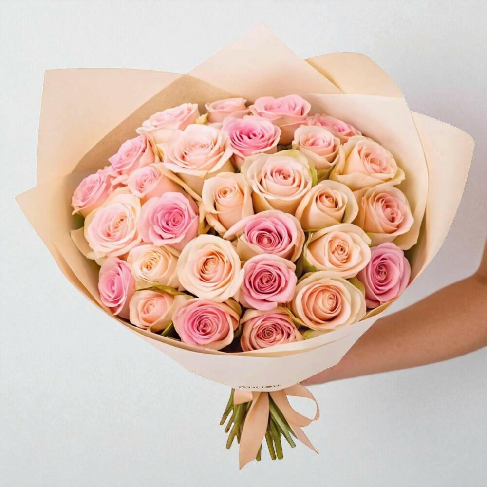 Bouquet de 35 roses roses à deux nuances
