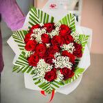Red rose - 20 pce Gypsophila - 3 pce palmier arica - 7 pce