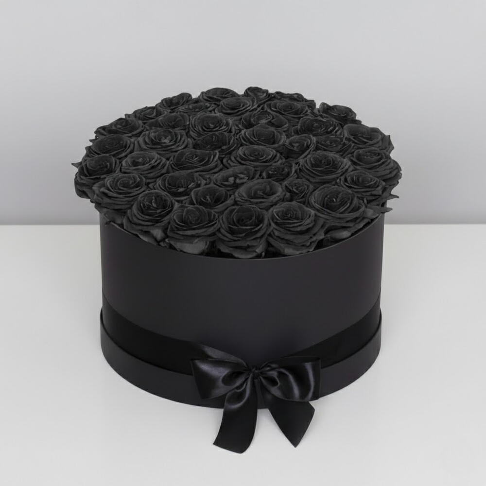 Une composition dramatique et élégante mettant en valeur 41 roses noires magnifiquement présentées dans une boîte noire élégante. Parfaite pour faire une déclaration audacieuse, exprimer une profonde admiration ou célébrer des occasions spéciales avec sophistication