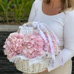 pink hydrangea - 5 pce petit panier - 1 pce boîte blanche avec 4 chocolats - 1 pce