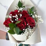 Red rose - 6 pce Ruscus - 3 pce gupsopila - 1 pce