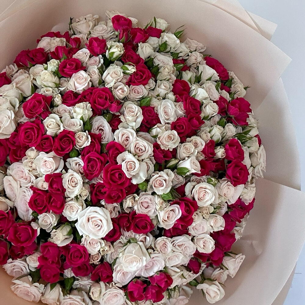 spray de roses fuchsia - 25 pce rose en spray blanc cassé - 25 pce