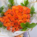 Éveillez la passion et la chaleur avec notre bouquet Sunset Blaze de 50 roses orange, une collection radieuse de 50 roses orange vibrantes, délicatement complétée par 5 fleurs de remplissage délicates et un feuillage vert luxuriant. Enveloppé dans un élégant papier blanc orné d'une bordure dorée, ce bouquet incarne l'énergie, l'enthousiasme et l'admiration — en faisant un cadeau audacieux mais gracieux pour tout moment spécial. Conseils d'entretien: Pour garder votre bouquet de roses orange frais et éclatant, placez les tiges dans un vase propre rempli d'eau fraîche et changez l'eau tous les deux jours. Conservez le bouquet dans un endroit frais et bien ventilé, à l'abri de la lumière directe du soleil et des courants d'air. Taillez les tiges en biais tous les quelques jours pour garantir une absorption optimale de l'eau.