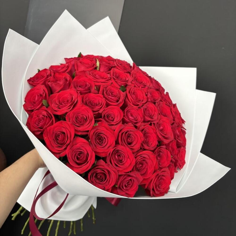Bouquet vibrant de 50 roses rouges