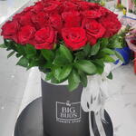 Box - 1 pce ruscus vert - 11 pce tiges de roses rouges - 50 pce