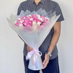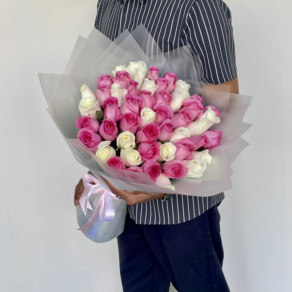 Offrez-vous la beauté élégante de notre Mono Bouquet — une délicate symphonie de 25 roses blanches immaculées associées à 26 charmantes roses « Revival » de couleur rose. Chaque bouquet, soigneusement composé, est méticuleusement enveloppé dans 5 couches d'emballage transparent blanc, mettant magnifiquement en valeur les teintes vives des roses. Pour apporter une touche de sophistication et de grâce, le bouquet est achevé par un unique ruban blanc exquis et une touche de rose. Véritable incarnation de simplicité, d'élégance et de charme, ce Mono Bouquet est l'expression idéale de sentiments sincères.