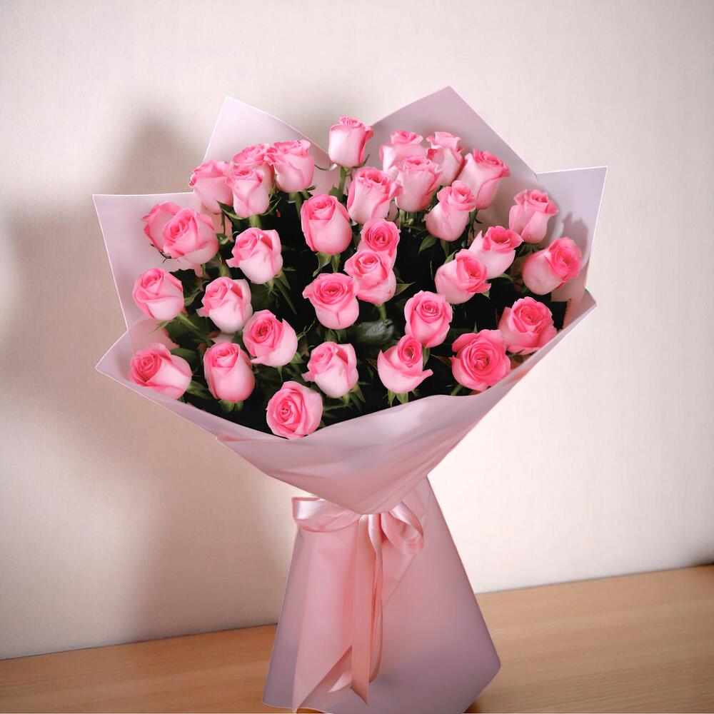 Bouquet de 51 roses roses avec emballage