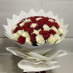 Bouquet de 51 roses rouges et blanches