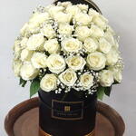 Box - 1 pce White rose - 51 pce Gypsophila - 3 pce