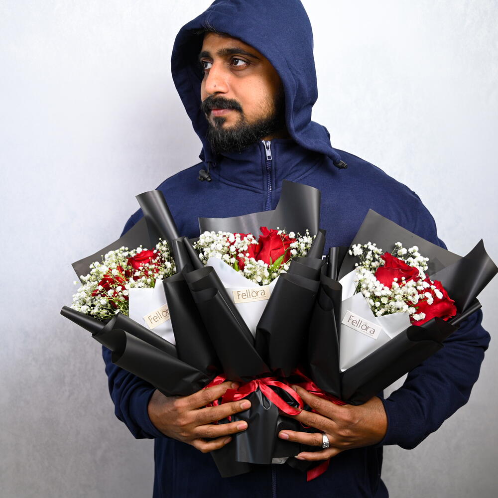 Adoptez la simplicité et l'élégance avec notre bouquet de 6 roses avec fleurs. Cette charmante composition associe six roses de qualité supérieure à la beauté délicate de la gypsophile, créant un bouquet frais et sophistiqué, parfait en toute occasion. Le bouquet comprend : 6 roses et 6 tiges de gypsophile. Description : Le bouquet de 6 roses avec fleurs présente une combinaison classique de roses éclatantes et de l'élégance aérienne de la gypsophile. Les fleurs douces et subtiles complètent parfaitement les magnifiques roses audacieuses, ce qui en fait un choix intemporel pour les anniversaires, les fêtes de fin d'année ou tout simplement pour exprimer votre amour et votre affection. Chez Fellora Flower Boutique, nous veillons à ce que chaque fleur soit soigneusement sélectionnée pour sa fraîcheur et sa qualité, vous offrant ainsi un bouquet qui restera beau pendant des jours. Partagez la simplicité et l'élégance de notre bouquet de 6 roses avec l'être cher ou offrez-vous une délicieuse expérience florale !