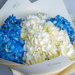 Ribbon - 1 pce hortensia bleu - 3 pce white hydrangea - 4 pce papier cadeau naturel - 5 pce