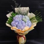 Ribbon - 1 pce Hydrangea - 5 pce Limonium - 3 pce Wrapping - 5 pce Leaves - 5 pce