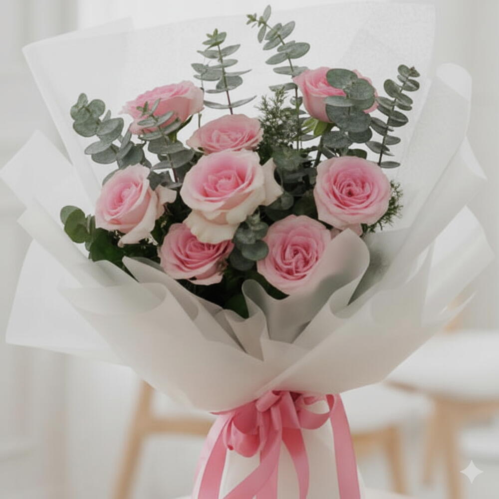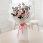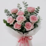 Un charmant bouquet de neuf roses fraîches de couleur rose, soigneusement arrangé pour exprimer de l'affection, de la gratitude et une tendre romance. Parfait pour les anniversaires, pour dire merci ou pour un doux geste quotidien qui semble personnel et sincère.