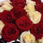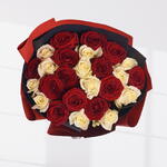 Description: 11 white roses 13 red roses Wrapping/ ribbon- red maroon white/grey