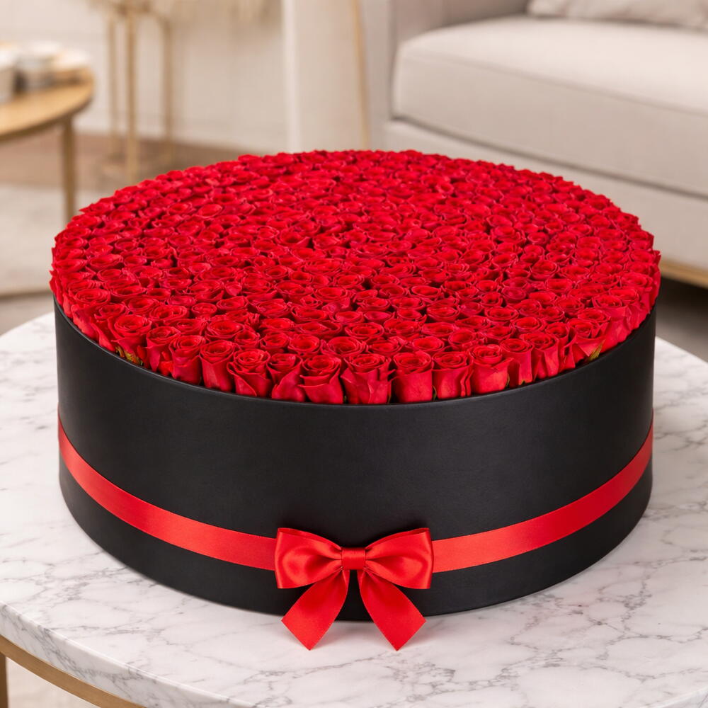 All My Love est une somptueuse boîte à fleurs remplie de 200–210 roses rouges de première qualité, magnifiquement disposées pour exprimer une passion profonde et une dévotion sincère. Conçue pour de grands moments romantiques, cette création luxueuse est parfaite pour les anniversaires, les demandes en mariage, la Saint-Valentin et les surprises inoubliables. Couleur de la boîte disponible en noir ou blanc (Envoyez-nous un message pour votre couleur)
