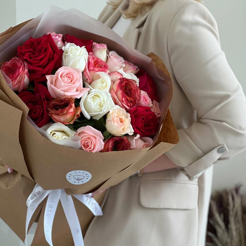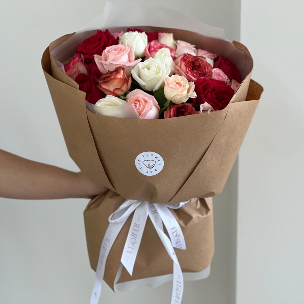 Bouquet de 25 roses de couleurs différentes en papier kraft