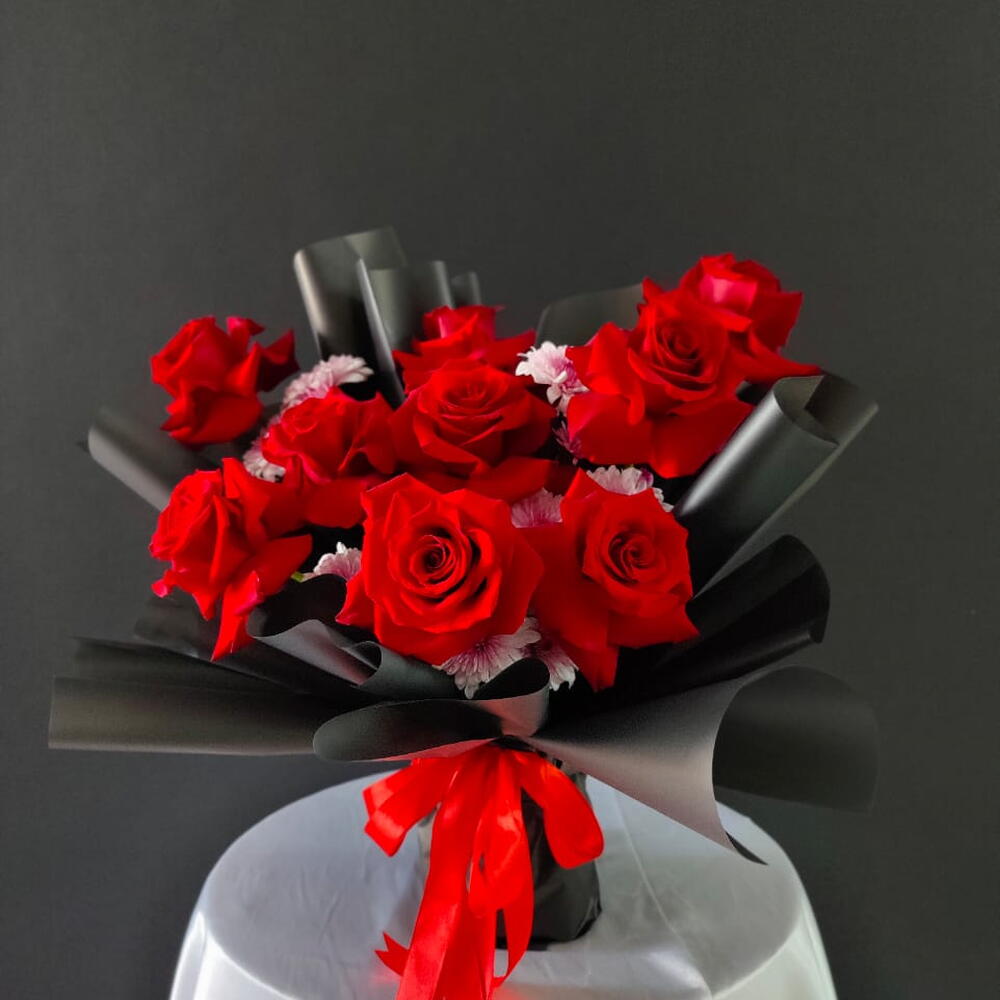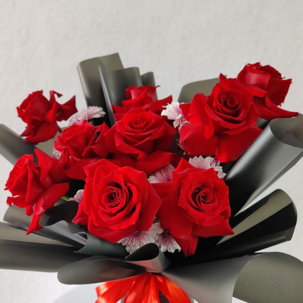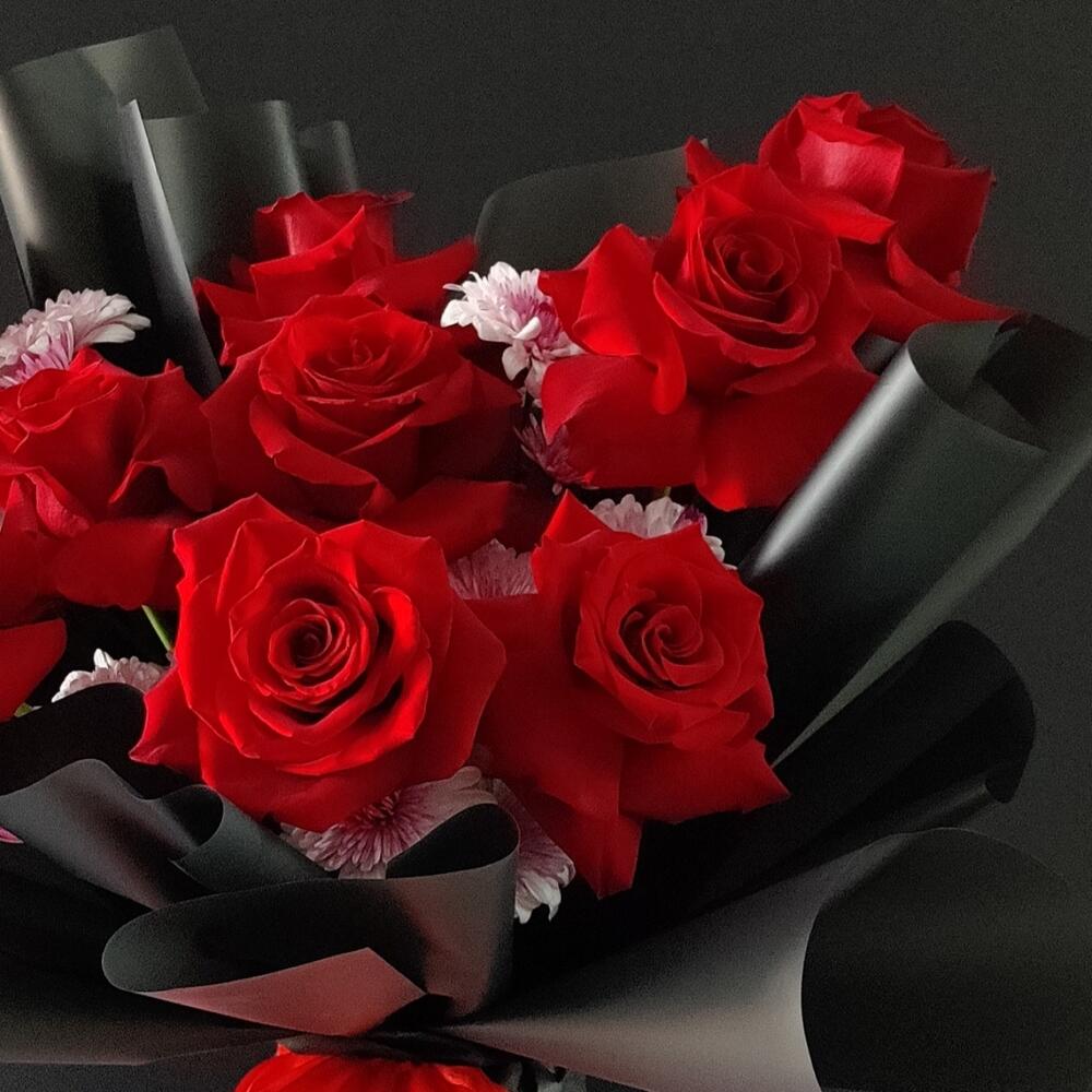 red roses - 10 pce chrysanthème. double couleur rose - 3 pce