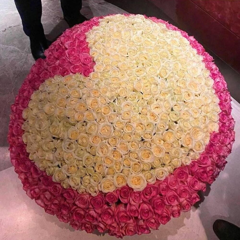 The best flower gift for your loving and close parson, 500 fresh white and light pink roses White roses 300pc Pink roses 200pc Large basket 1pc with heart shape in a basket, hand made Heart shape on the middle.