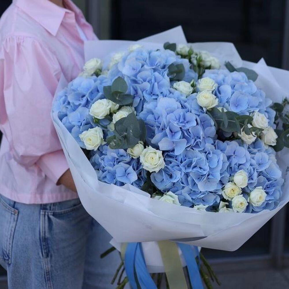 hydrangea blue - 7 pce rose en spray blanche - 10 pce