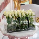 grand sac transparent en acrylique avec décoration de rose blanche naturelle - 27 pce